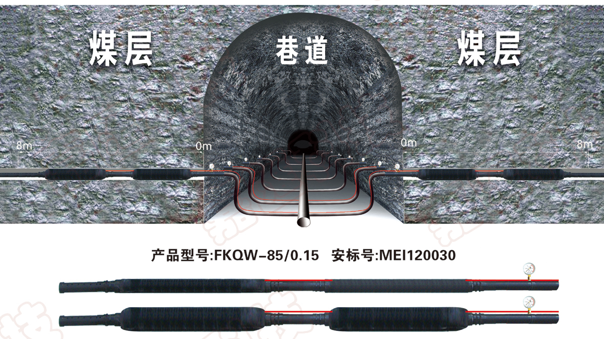 一、用途:深孔抽放瓦斯氣體 二、功能:排出瓦斯氣體,提高安全系數,能有效防止煤層瓦斯突出與爆炸。 三、優勢:即插即用,高科技材料阻燃抗靜電,擁有安标證、ISO認證,經濟耐用,可反複使用,方便、快捷、省時、省力迅速完成封孔,封孔嚴密,可随孔徑的不規則變化而變化,深度封孔器、量身定做,一器多用。封孔直徑75mm-150mm 四、使用方法:直接插入充氣即可抽放瓦斯 五、注意事項: 1、送插封孔器及回收封存孔器嚴禁帶壓操作。 2、封孔器工作時正前方不許有人作業。