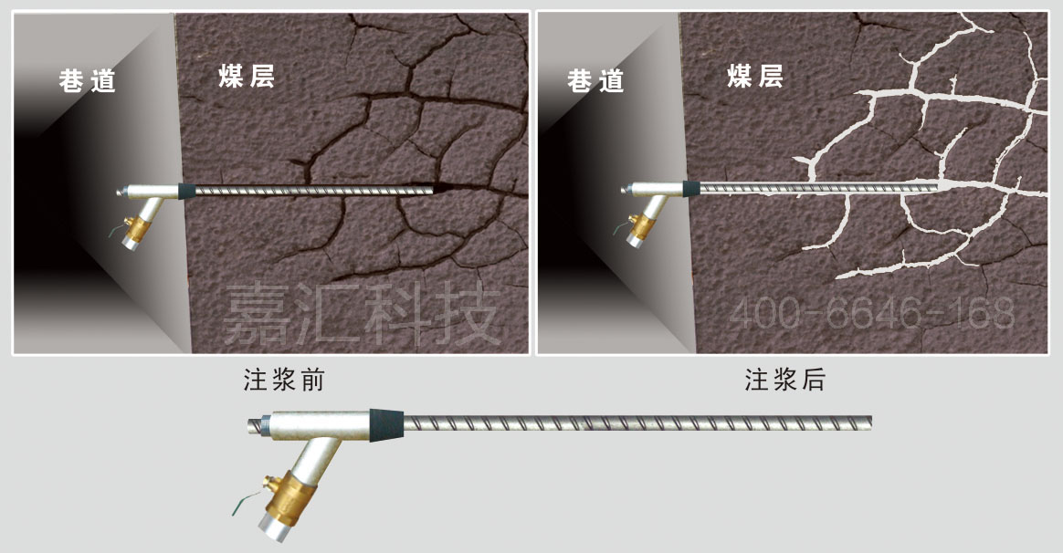 在現有的錨杆封孔中用錨固劑來加固錨杆,錨杆耐拉力小,加固不牢,周邊裂隙進不去沙漿不能加固。用空心錨杆注沙漿可達到加固作用,但空心錨杆價格高,拉力不如螺紋鋼。
